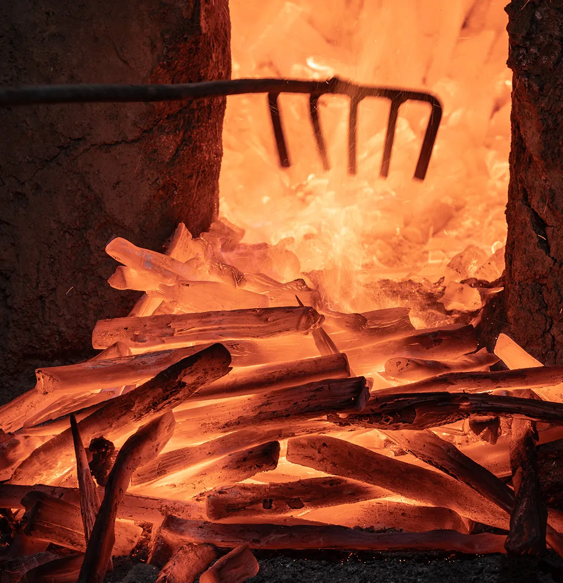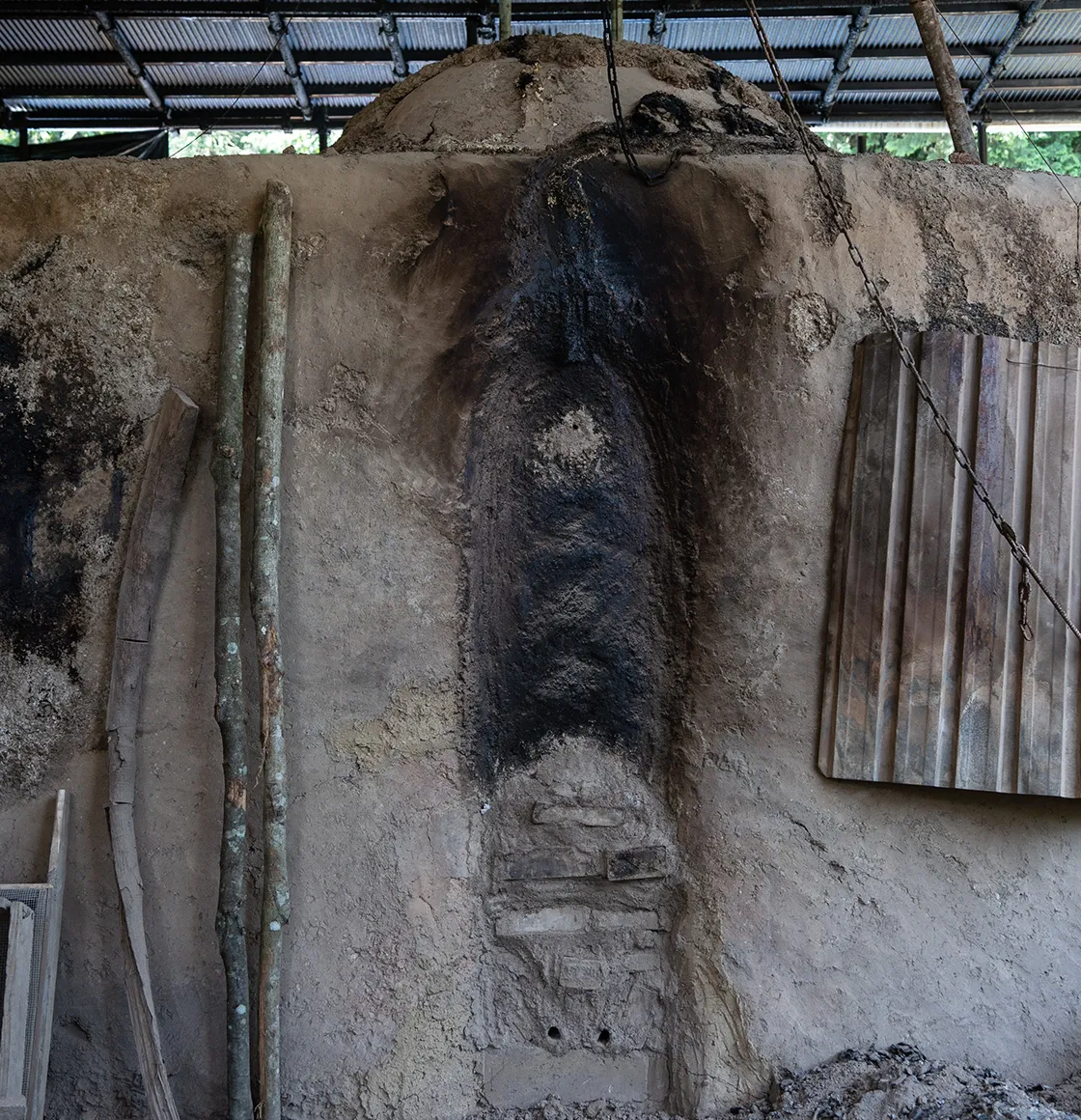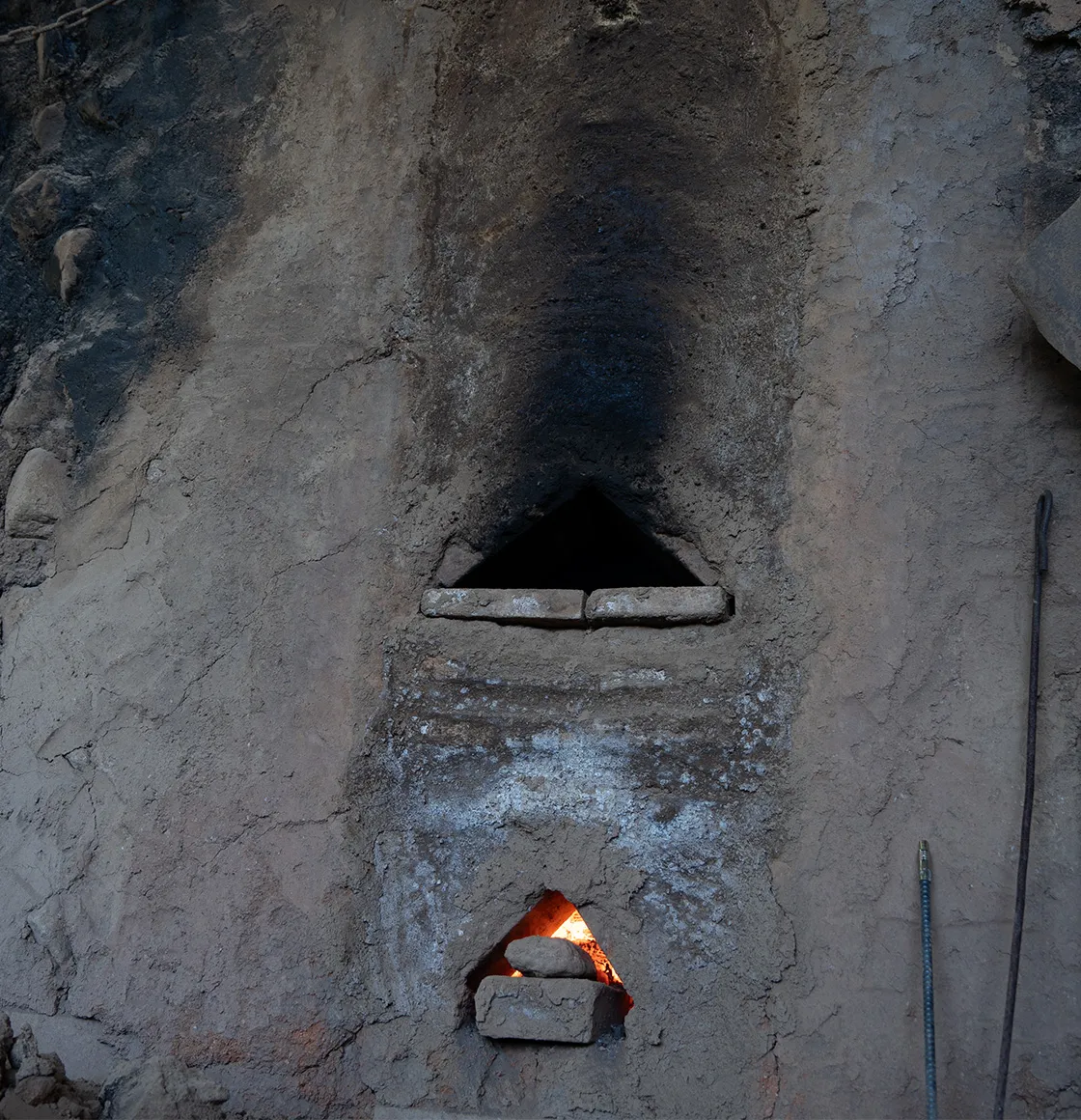 職人の手によって、この地にいちから作られた窯。様子を伺いながら熱を調整してあげると、自然に窯が仕事をしてくれる。そこには熱せられた窯を前に、大粒の汗をかきながらも直向きにいい炭を追求する職人の姿がある。