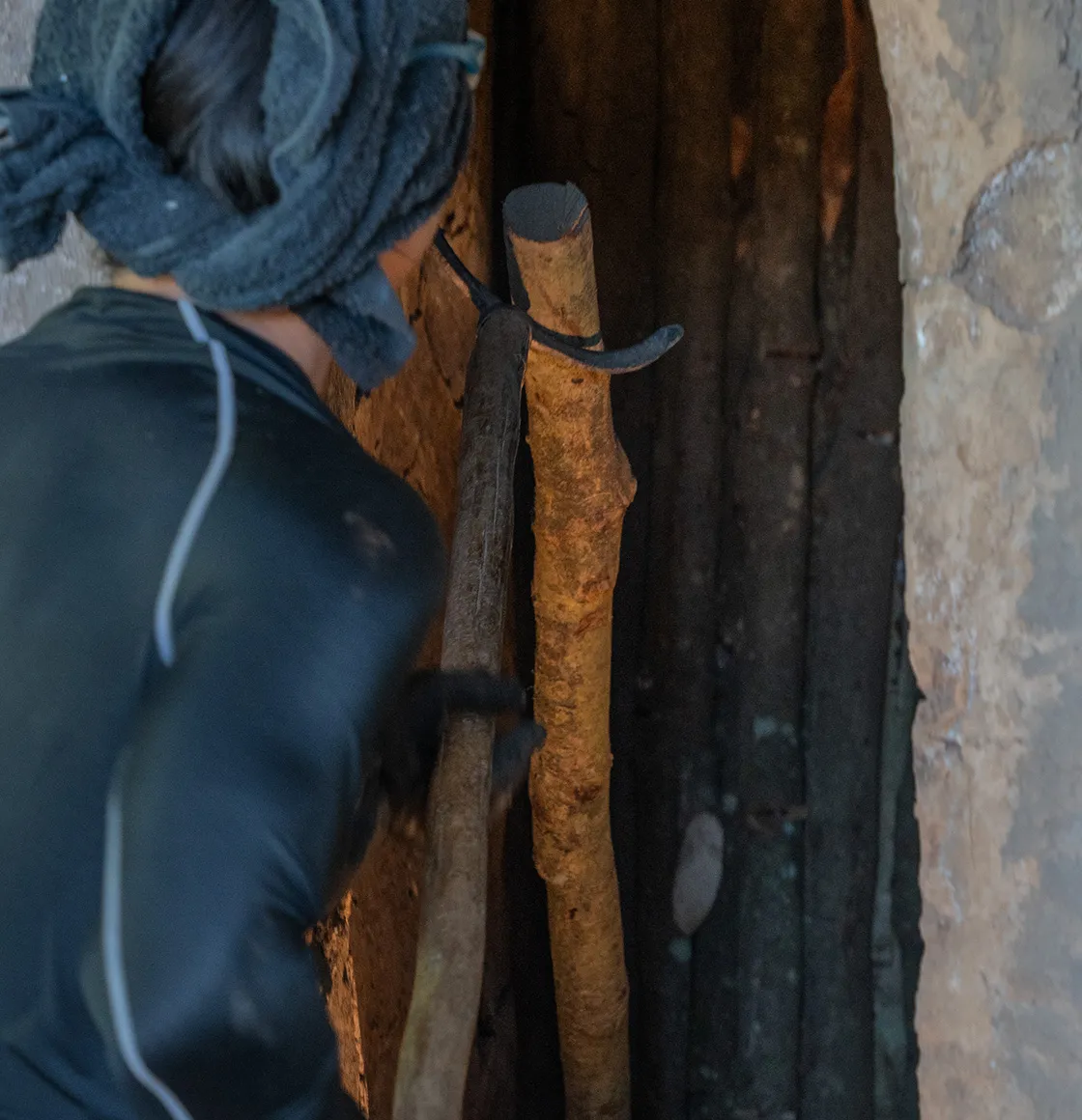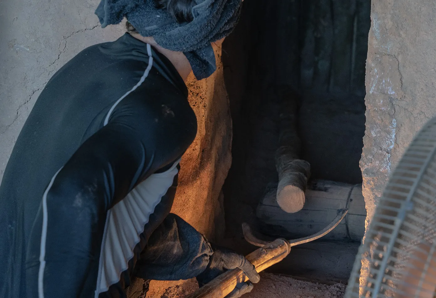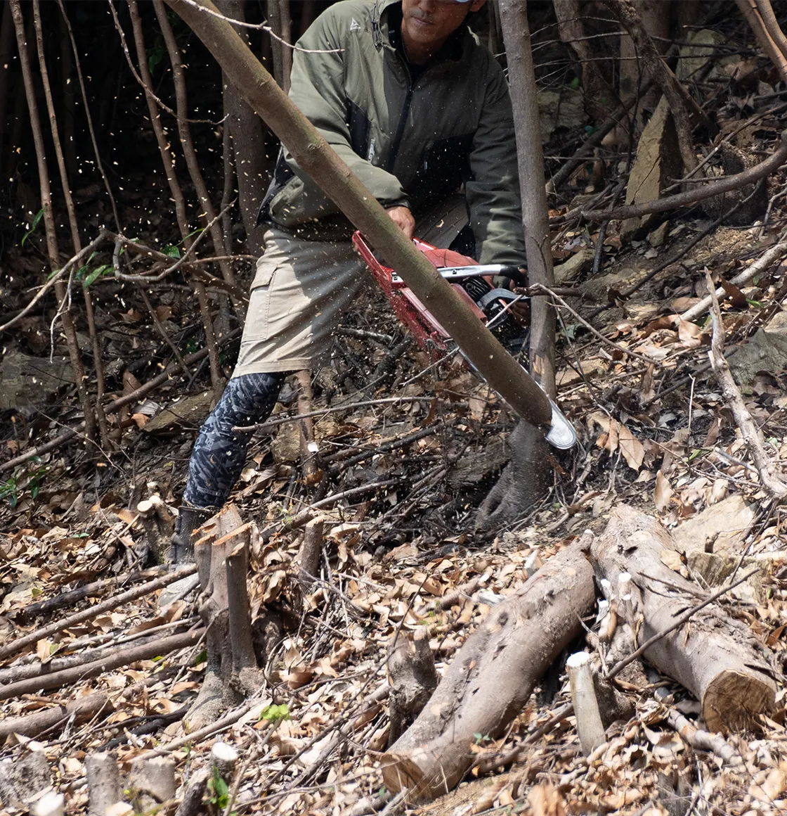 職人の手によって、この地にいちから作られた窯。様子を伺いながら熱を調整してあげると、自然に窯が仕事をしてくれる。そこには熱せられた窯を前に、大粒の汗をかきながらも直向きにいい炭を追求する職人の姿がある。