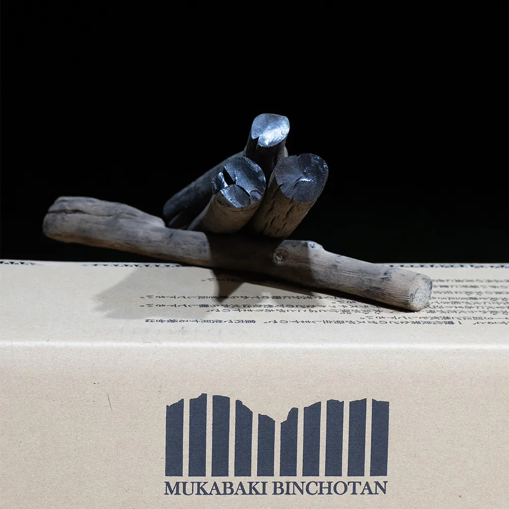 こうして作られた白炭は、燃焼時間が長く火力が強いのが特徴で、赤外線の量が高く、表面をまんべんなく均一かつ一気に焼き上げることができるため、食材の美味しさを失うことなく短時間で焼くことができる。